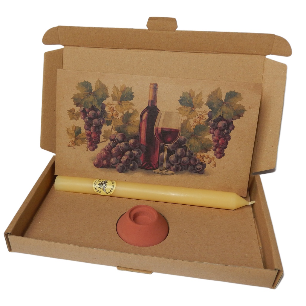Kartonik Ciepła – świeca pszczela, świecznik i kartka Wino i winogrona