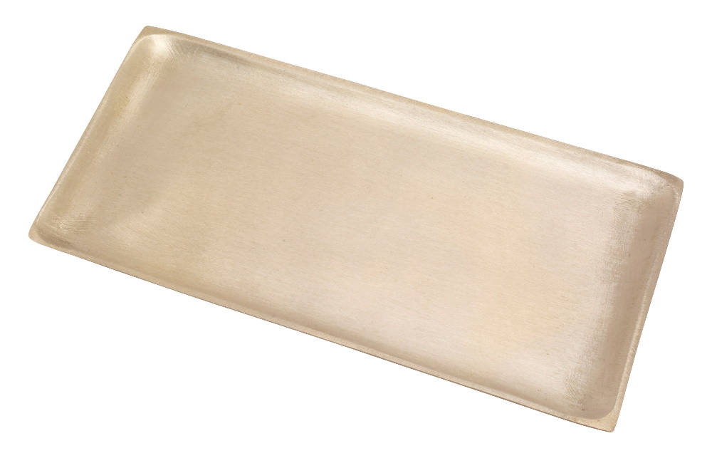 Świecznik – prostokątny ciężki talerzyk – został starannie wykonany ręcznie z mosiądzu.