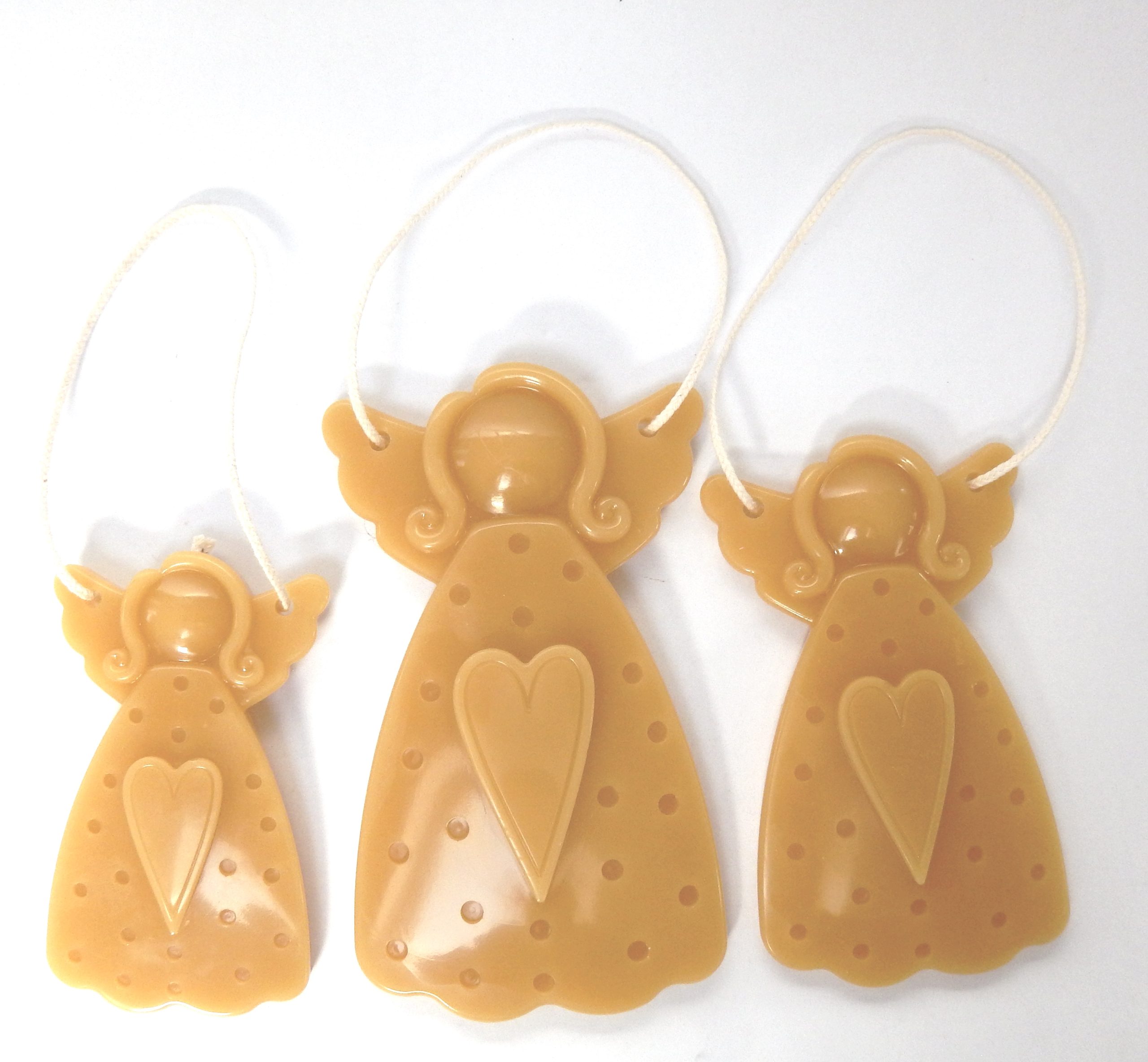 – zestaw 3 aniołków na bawełnianych sznureczkach z czystego wosku pszczelego